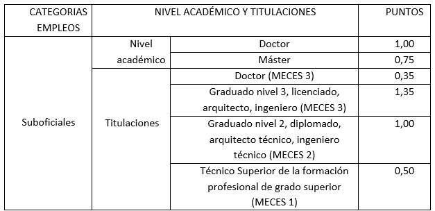Niveles académicos y titulaciones baremables